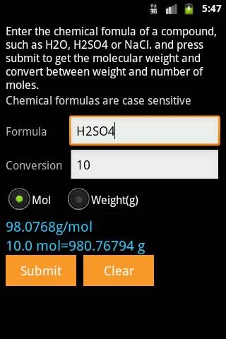| Screenshot Chemical Calculator (Google Play) |